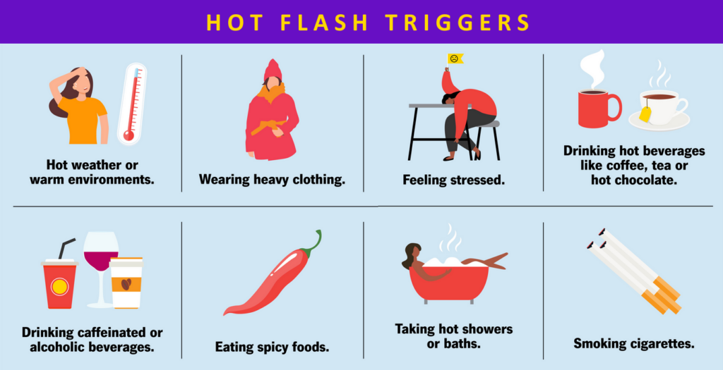 The Cleveland Clinicโs article โHot Flashesโ lists several triggers, such as stress, smoking, and drinking alcohol. Below is the list of triggers from the Cleveland Clinic, along with some Lauren commentary.